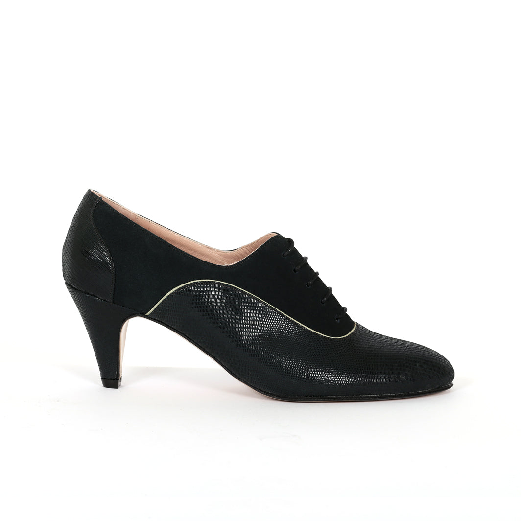 Noé, c'est le soulier que l'on chausse pour se sentir unique et conquérante. On aime ses accents légèrement rétros. Cette version noir intense affiche un équilibre parfait. N'hésitez plus, elle est faite pour vous !